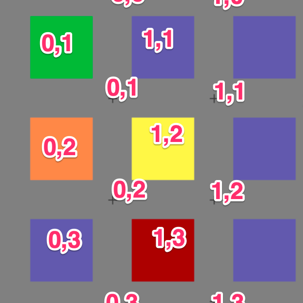 0,2and1,2, discovers a yellow building, and makes a left turn. - Player travells from