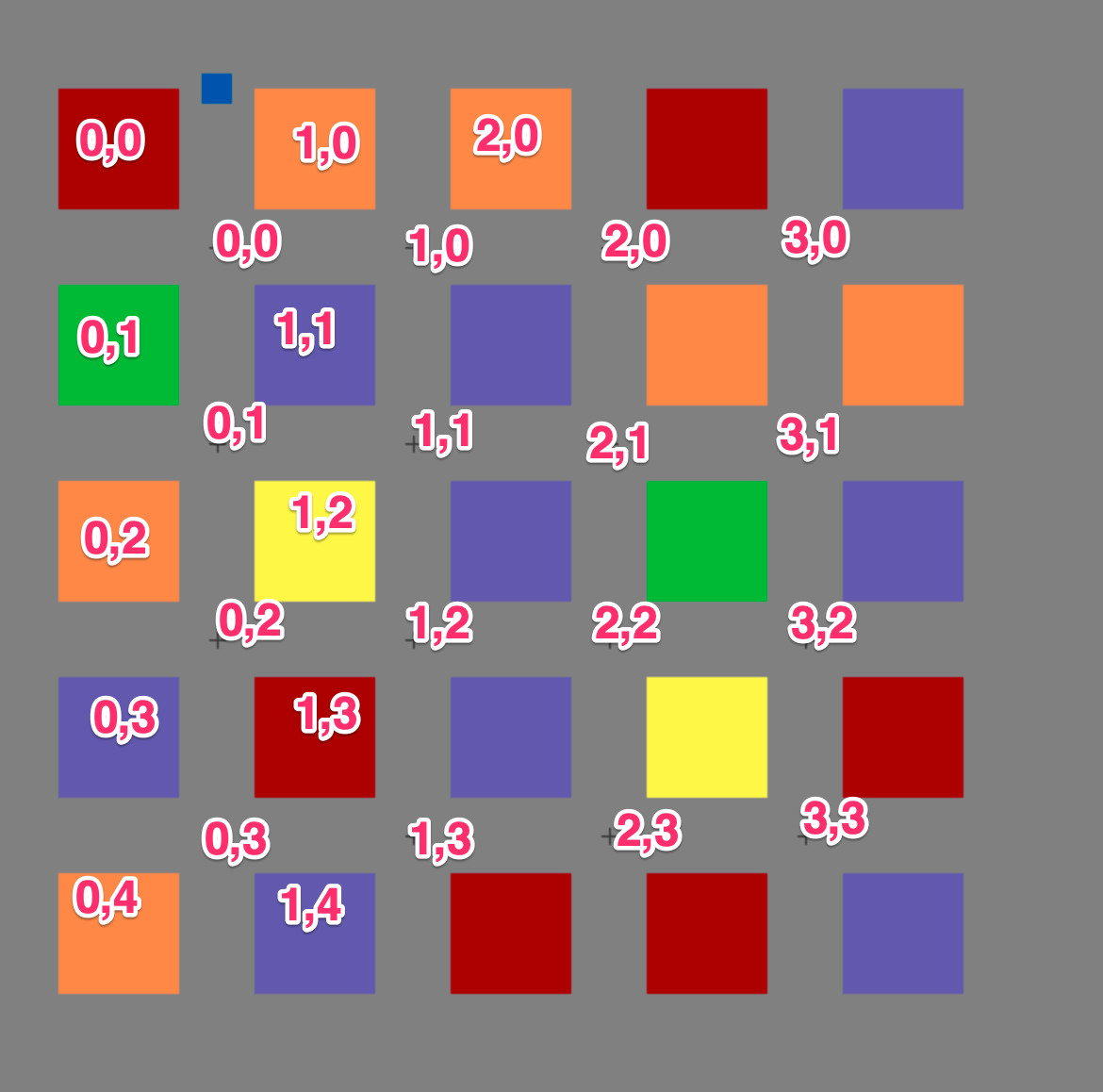 Then I thought about the first move the cursor would make, traveling down. When it moves up and down it needs to look at the buildings to the left and right. If it moves left and right it needs to look at the buildings above and below it.