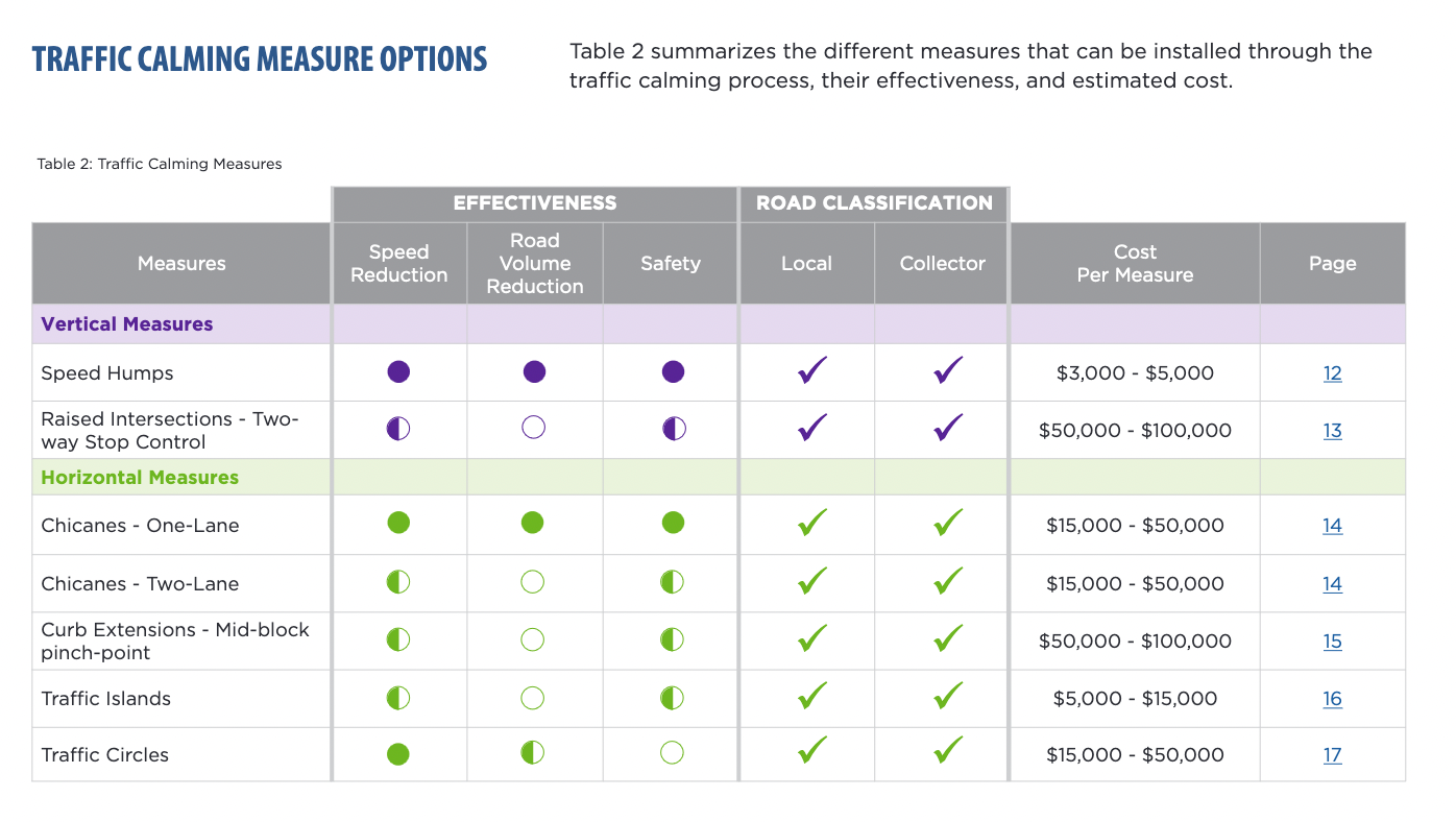 "How exactly do we get cars to slow down" is a pretty common topic. The City of Toronto put out this traffic calming guide in 2016, it lists a number of different ways of slowing down traffic, their effects, and approximate costs. One would expect costs have gone up since then, but it's somewhere to start.